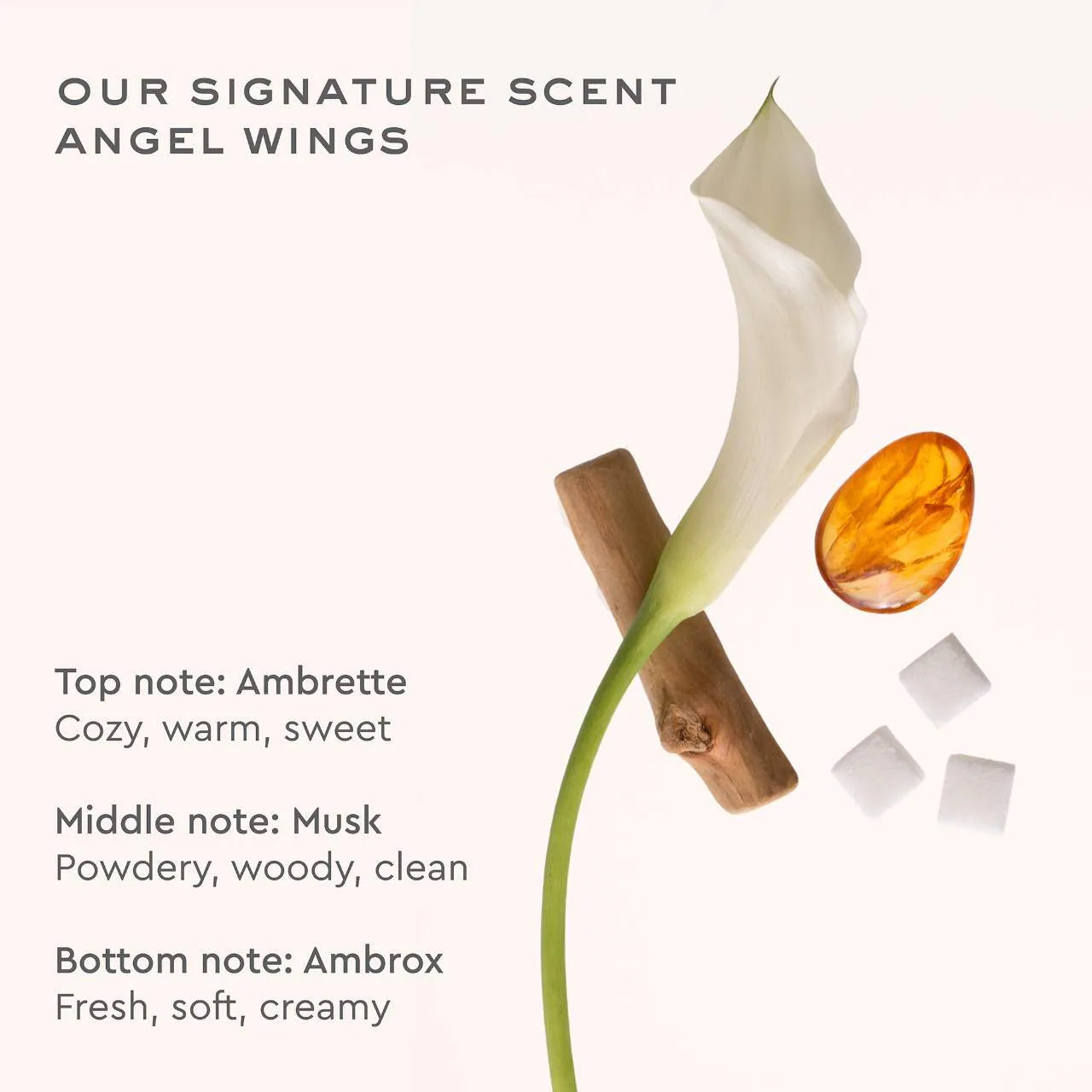 Descripción de la fragancia: La fragancia exclusiva de Emi Jay, "Angel Wings", una mezcla celestial de ámbar y almizcle claro, crea una fragancia cálida y reconfortante que realza tu cabello con un aroma rico, sofisticado, duradero y seductor.