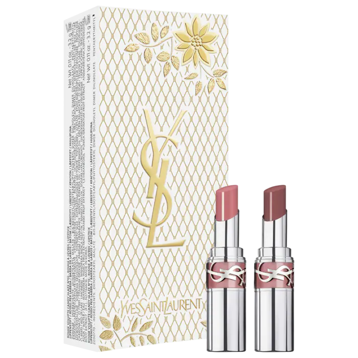 Qué es: Un set de regalo con dos tonos nude más vendidos de YSL Loveshine, un híbrido de lápiz labial a aceite construible hecho con seis aceites nutritivos.