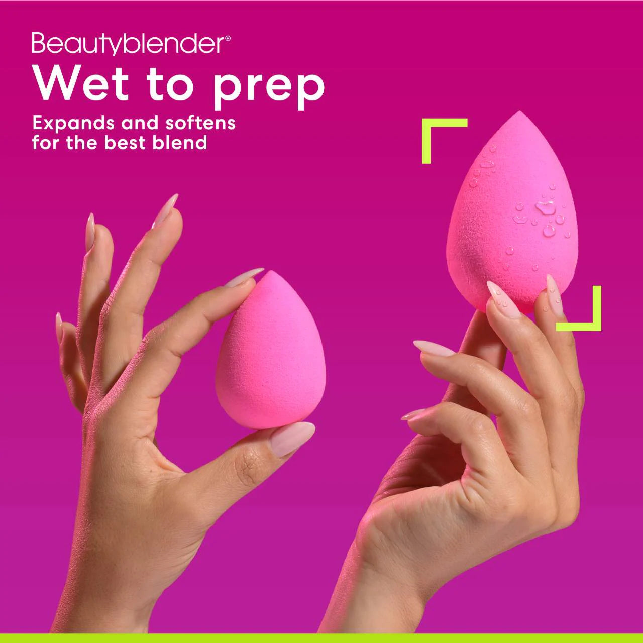 Hecho con la misma espuma ultra-pelpa exclusiva que el Beautyblender original. Cuando está húmedo, se vuelve mega suave e imita los poros para crear fácilmente una aplicación natural con aerógrafo. Además, absorbe el agua, no el maquillaje, por lo que tus fórmulas favoritas aterrizan en tu piel, no en tu esponja.
